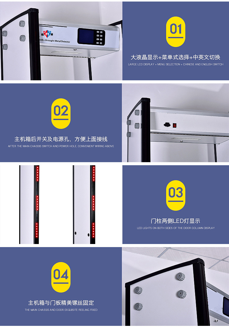 • 看門神 KMS-600M安檢門(22區(qū))采用電磁兼容設(shè)計和抗震動設(shè)計,具有高靈敏度、強抗干擾能力和強抗震能力,適用于管制刀具和槍支等危險物品的安全檢查,廣泛應(yīng)