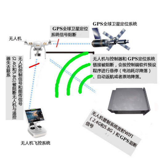 3、無(wú)人機(jī)無(wú)法定位;攔截儀可迫使無(wú)人機(jī)降落或者返航