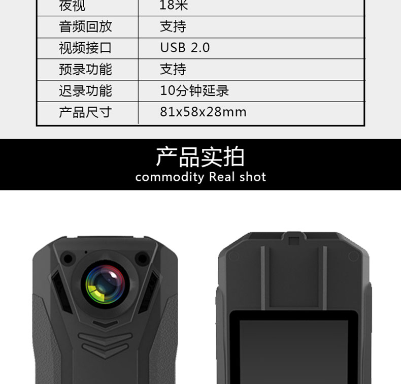7.電池:設(shè)備采用內(nèi)置不可更換電池,設(shè)備連續(xù)錄像≥8.6小時(shí)。